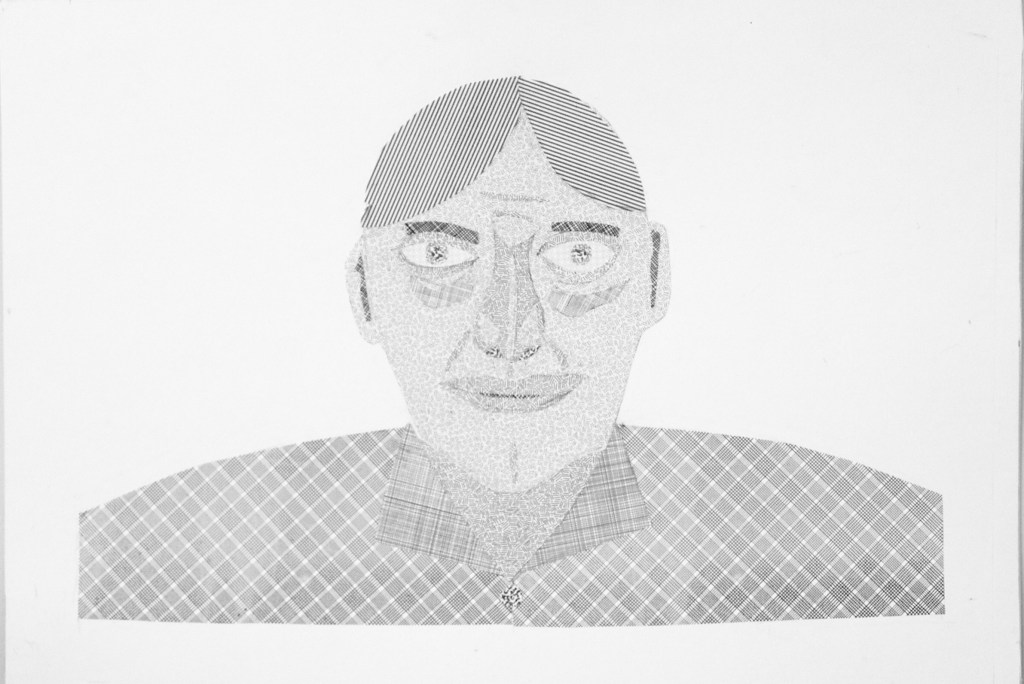 PORTRAIT OF THE ARTIST WITH SECURITY ISSUES is part of my “IRIAAM” Series of self -portraits using (or attempting to) the same basic image and different mediums; in this case a collage made from “FSPs”, or financial security papers, the inside linings in things like bank statements and credit card bills. This was the first of what will probably be several “black and white” versions as I experiment with different sizes and patterns to try to get a little more nuance into the shading. I’m also going to do at least one “colored” version – it is amazing the number, of colors, tints, and patterns these things come in. (14” x 20”) (2020) ($125)