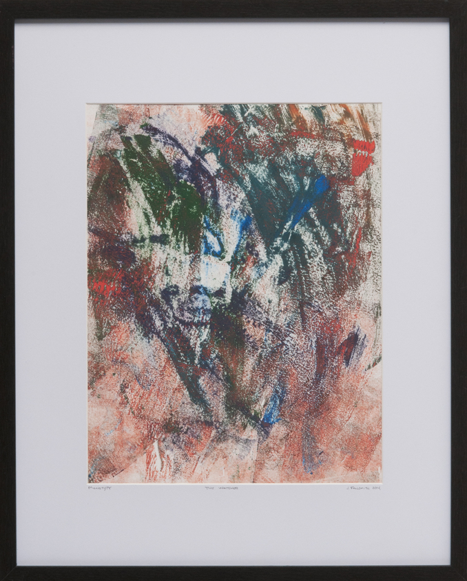 Among the legends and mythology of Western Civilization is that of The Watchers, a different, and somewhat sinister, species in human form living among us for thousands of years. I have used the free form and color of the traditional monotype medium to evoke the elemental unease that lies at the core of this legend.